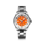 Aside from looking good, the new Breitling Superocean is also a technical marvel. Broad hands and indexes coated in luminescent Super LumiNova ® allow for superior readability underwater. At 300 m (1000 ft) water resistance, this watch triples the minimum requirement for dive watches. The two strap options (rubber and metal bracelet) have a folding clasp that allows for micro adjustments of up to 15 mm for easy wear over rashies and dive suits. Its scratch proof ceramic inlayed bezel means it will never wear or fade. For safety, the bezel is uni directional on most sizes and bi-directional with a patented lock on the 46 mm. This Breitling Superocean is also shock -, sand and saltwater resistant. It's automatic Breitling Caliber 17 comes with a two year warranty and approximate 38 hour power reserve.