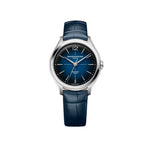 The Clifton 10833 boasts a round case in satin-finished stainless-steel, joining the collection in a 34mm format. Its case features a stainless-steel crown and a sapphire open case back. The gradient blue lacquered dial, edged by a white minute track and crosshair, highlights the Arabic numeral at 12 o’clock, riveted rhodium-plated trapezoid-shaped indexes, and alpha-shaped hands. It is equipped with a self-winding Baumatic movement (BM13-1975A) with a 5-day power reserve and water resistance to 5 ATM. The interchangeable blue alligator strap features a reliable system for tool-free changes.