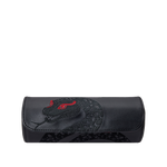 On their black vegan leather exteriors the eyes of the Dragon or the Snake are highlighted in red embroidery, inside find beautiful subtle embroidery on the red interior roll encased in a red Ultrasuede lining, a colour associated with good fortune and joy.