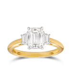 Enquire about 1.50 Carat Emerald Cut and Trapezoid Trilogy Engagement Ring in 18ct Yellow Gold
