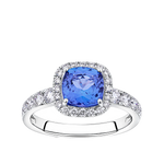Enquire about Tanzanite Cushion and Diamond Halo Ring in 18ct White Gold