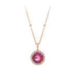 Enquire about Pink Tourmaline Round and Diamond Halo Pendant in 18ct Rose Gold
