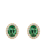 Enquire about Green Tourmaline Oval and Diamond Halo Stud Earrings in 18ct Yellow Gold