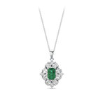 Enquire about Emerald and Diamond Halo Pendant in 18ct White Gold