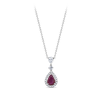 Enquire about Pear Cut Ruby and Diamond Halo Pendant in 18ct White Gold