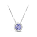 Enquire about Halo Tanzanite and Diamond Pendant in 18ct White Gold