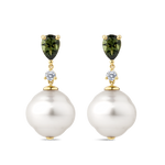 Enquire about Australian South Sea Pearl Tourmaline and Diamond Drop Earrings in 18ct Yellow Gold
