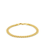 Designed to drape elegantly on the wrist, the bracelet offers a bold yet versatile silhouette—perfect for both everyday sophistication and special occasions. Its classic curb link design, combined with the warmth of rich yellow gold, exudes understated opulence and enduring style.