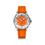 Aside from looking good, the new Breitling Superocean is also a technical marvel. Broad hands and indexes coated in luminescent Super LumiNova ® allow for superior readability underwater. At 300 m (1000 ft) water resistance, this watch triples the minimum requirement for dive watches. The two strap options (rubber and metal bracelet) have a folding clasp that allows for micro adjustments of up to 15 mm for easy wear over rashies and dive suits. Its scratch proof ceramic inlayed bezel means it will never wear or fade. For safety, the bezel is uni directional on most sizes and bi-directional with a patented lock on the 46 mm. This Breitling Superocean is also shock -, sand and saltwater resistant. It's automatic Breitling Caliber 17 comes with a two year warranty and approximate 38 hour power reserve.