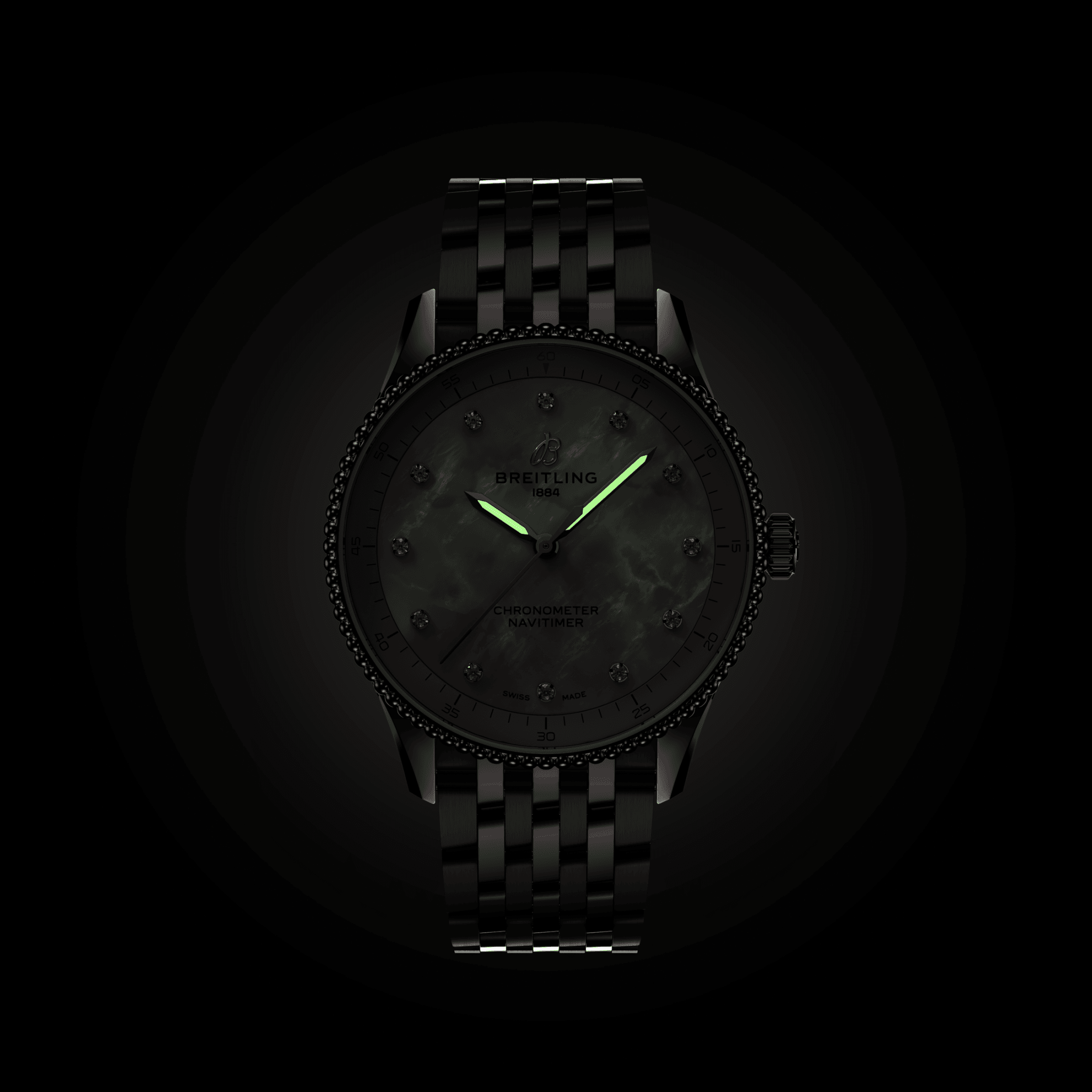 The icon now comes in 36 and 32 mm sizes for women and men who love the look and feel of a smaller diameter watch. While the 36 mm Navitimer features the beaded bezel and iconic circular slide rule that gives the Navitimer its unmistakable appearance, the dazzling 32 mm variation forgoes the slide rule in favor of a simplified dial design suited to its slim diameter.