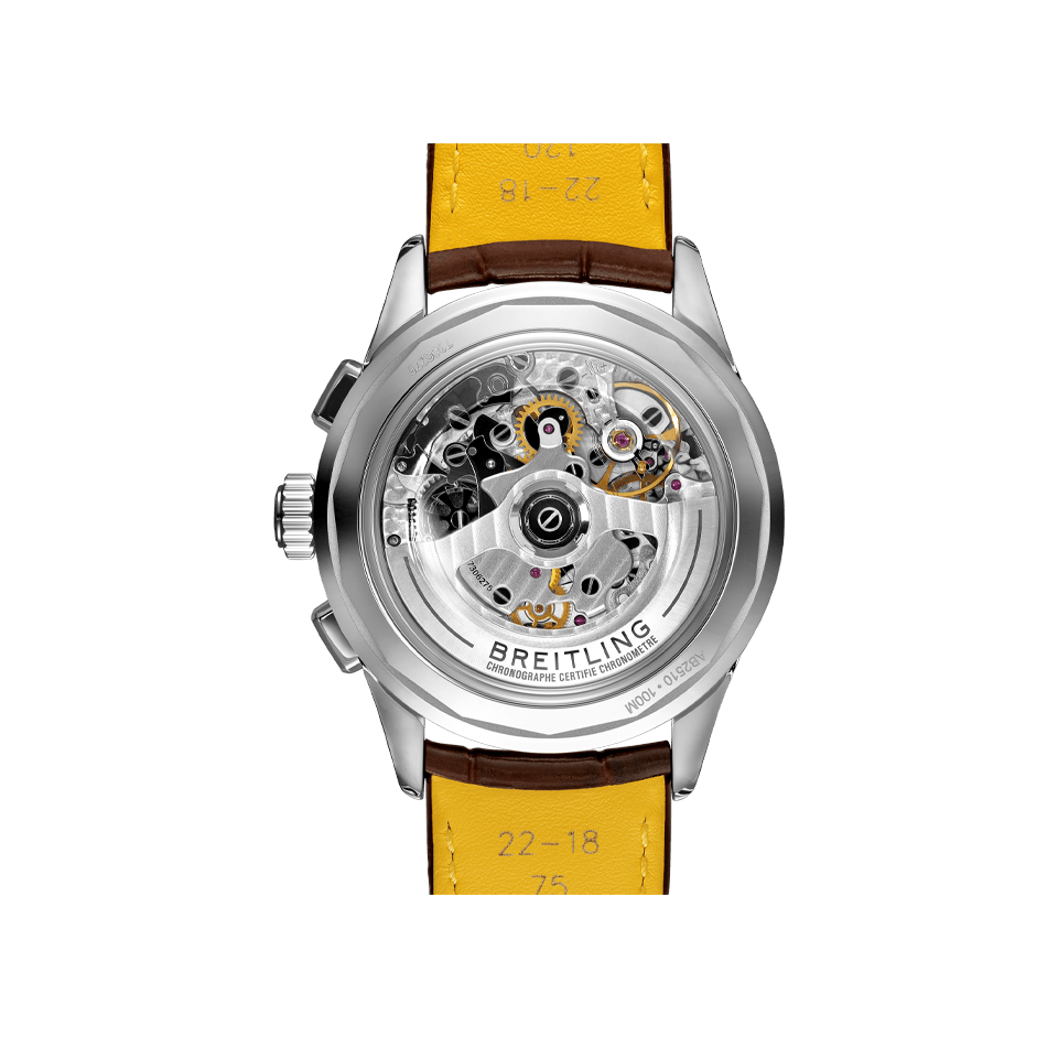 This latest generation of Breitling Premier chronographs brings its timeless elegance back to life, and showcases Breitling’s highest level of watchmaking thanks to a range of iconic Breitling Premier complications: the Chronograph, the Duograph and the Datora. Featuring rectangular chronograph pushers and Arabic numerals, the heritage-revived Breitling Premier Datora displays a variety of elegant design details such as grooves on the case-sides, open sapphire casebacks and vintage-inspired hands. The Datora comes in two variations: in stainless steel with a copper dial and a brown alligator strap or in 18k red gold with a silver dial and a brown alligator strap. “Datora” was a term used by Breitling in the 1940s and refers to a complete calendar chronograph displaying day, date, month and the different moon phases. The Breitling Premier Datora is powered by the cosc-certified Manufacture Caliber B25.