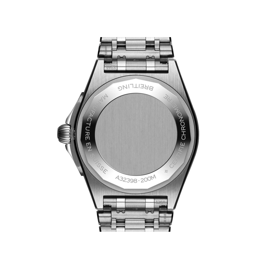 The Breitling Calibre 32 powers the GMT complication. Its 24-hour scale lets the user track a second-time zone and know at a glance whether it's day or night, while the “onion” crow (a classic Chronomat feature named for its fluted-dome shape) allowed for easy adjustments. As an all-purpose sports watch, meant to cross over between Breitling’s air, land and sea universes, the GMT 40 has an impressive 200m water resistance.