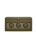 The Earth Triple Watch Winder, from the 190th anniversary collection, brings together innovative design, elegance and sustainability. Featuring an apple leather exterior with toning matt metallic hardware and bezels combined with a recycled jacquard silk interior with the WOLF signature pattern. The Dynamic Lock-in Cuff is customisable to three different wrist sizes and locks your watches inside the winder. Individually set the required Turns per Day and direction for your three watches via the WOLF Bluetooth app. In the top storage section find five suspended watch cushions and removable accessory tray with multiple sections for your valuables.