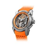 When launching the new Epic X collection in 2016, Jacob & Co. ventured into a new direction, with new shapes, new material and a new frame of mind. The inspiration of the design came from the letter X which symbolizes something unknown, mysterious and appealing which was the energy of the brand at the time. Epic X Skeleton is the combination of a staple of watchmaking, the skeleton watch, and the radical design approach of Jacob & Co.