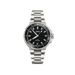 The Aquis Date 36.50 mm is deliberately more jewel-like than its sister models with larger case sizes. Now, the brief goes literal. This black dial version with a steel bracelet has 11 hour markers, each set with three brilliant-cut, lab-grown diamonds.