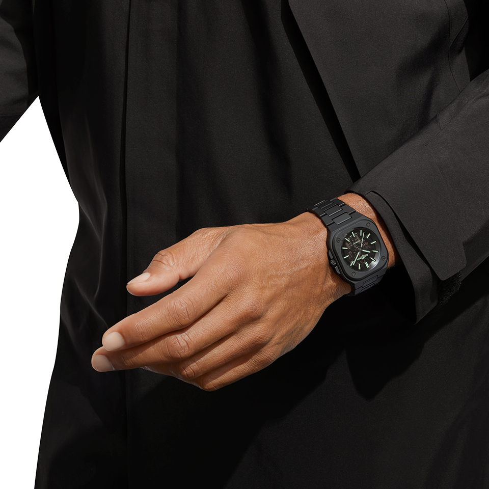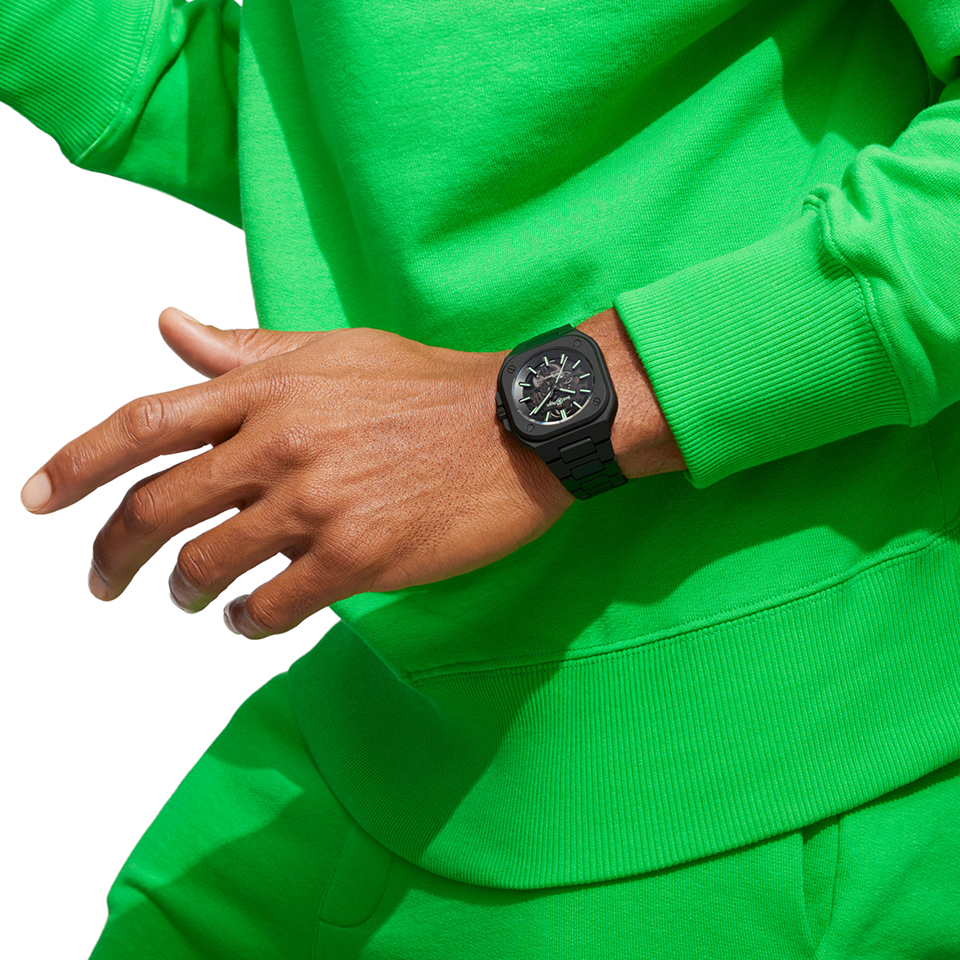 This strong dashboard-inspired piece sports the brand's iconic black colour and is crafted from ceramic – a technical material known for its robustness.