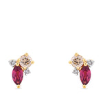 Enquire about Fancy Cut Champagne and White Diamond and Rhodolite Garnet Stud Earrings in 18ct Yellow Gold