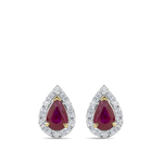 Enquire about Pear Cut Ruby and Alternating Diamond Stud Earrings in 18ct Yellow and White Gold