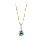 Enquire about Pear Cut Emerald and Diamond Halo Pendant in 18ct Yellow and White Gold