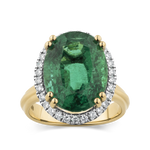 Enquire about 170 Vault Emerald and Diamond Halo Ring in 18ct Yellow Gold