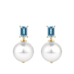 Enquire about Australian South Sea Pearl and Aquamarine Drop Earrings in 18ct Yellow Gold