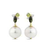 Enquire about Tourmaline Peridot Diamond and Australian South Sea Pearl Drop Earrings in 18ct Yellow Gold