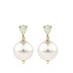 Enquire about Australian Opal and South Sea Pearl Earrings in 18ct Yellow Gold