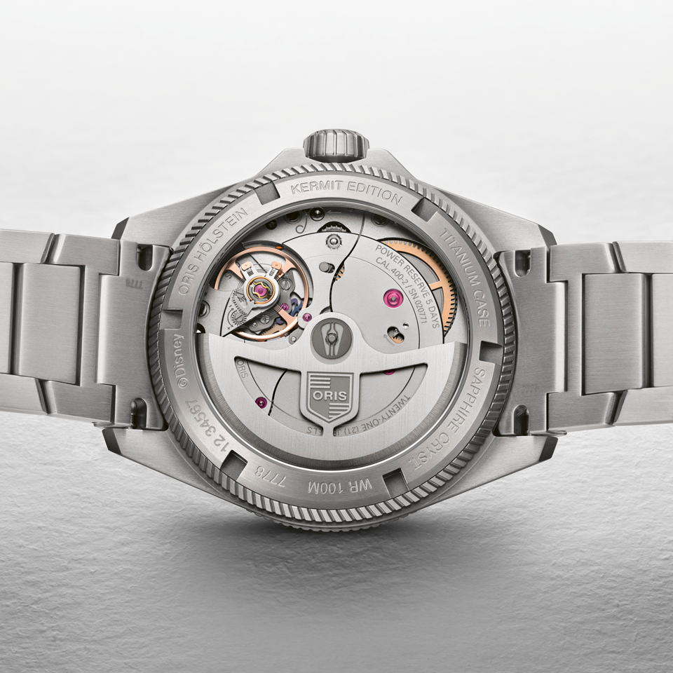 The watch is fitted with Oris Calibre 400, the innovative in-house automatic Oris spent six years developing. The movement makes three key performance promises: anti magnetic, five day power reserve and a 10 year warranty.